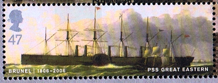 The third and greatest ship built to the designs of the naval architect I. K. Brunel, was the Leviathan, renamed the Great Eastern when she was launched. In size and design she was forty years ahead of her time. The ship was intended to carry passengers and cargo from Europe to India and Australia and had to be economical over long distances. Construction was started in May 1854 at John Scott Russell and Co. in Millwall. The ship was all-iron and had four decks. The bottom and sides were of double cellular construction.The hull had a longitudinal system of framing and was subdivided by transverse bulkheads into twelve watertight compartments. The Great Eastern had five funnels and six masts with square and fore-and-aft rigging, with a sail surface area of about 6,500 square yards (5,435 square metres). The ship was designed to carry 4,000 passengers in three classes ' and 6,o0o tons of cargo in addition to 12,200 tons of coal. The crew numbered 400.