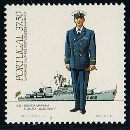 The uniform depict on the stamp is that of a Midshipsman of 1982.