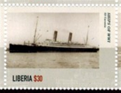 CARONIA was briefly placed on Cunard's Boston service in 1914, but the start of World War I caused her to be requisitioned as an armed merchant cruiser. She was hired as an AMC on 02 August 1914 and fitted out at Liverpool with 8 – 4.7 inch guns. 08 August 1914 commissioned as HMS CARONINA. 10 October 1914 she sailed from Liverpool for the North Atlantic patrol duties attached to the North American and West Indian Station. March 1915 refitted and rearmed with 8 – 6 inch guns. 22 September 1916 decommissioned, and converted for trooping duties in the Indian Ocean between India and South and East Africa, returning in 1918 to the Liverpool-New York run after the War.