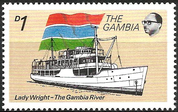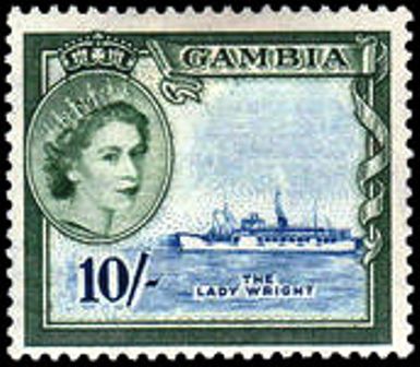 The new 3d. Gambia stamp shows the twin-screw motorship Lady Wright. Launched on June 28, 1949, from the shipyard of John Morris and Co., (Gosport), Ltd., this vessel was named by the wife of Sir Andrew Wright, the late Governor of the colony of Gambia. She was ordered by the Crown Agents for the Colonies on behalf of the Gambia Government and operates on the Gambia River as part of the Government river transport service. The vessel travels to Basse, which is some 320 miles inland by river, and has on board one of the few travelling post offices in the world. She provides a weekly service taking passengers, cotton piece goods, tobacco, sugar and rice into the hinterland, and returning with more passengers, palm kernels and groundnuts, of which more than 40,000 tons are exported to Great Britain each year.