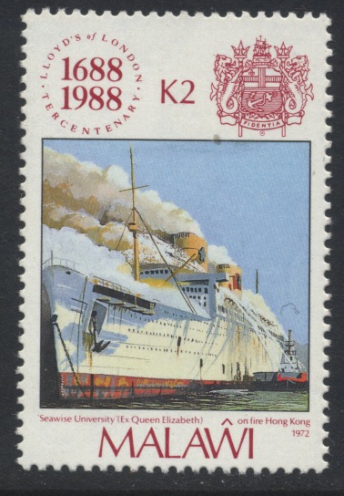 Throughout her career she made 907 Atlantic crossings ; covered over 3,470,000 miles and carried more than2,300,000 passengers excluding her war service. Affirmed the largest ship the world had ever seen she lacked the graceful lines of the lesser sized liners. Since her sale to the city of Fort Lauderdale she has not proven a success and has been making some trips under the name of Seawise University, after her sale to Mr C. Y. Tung in 1970 as a floating University. On January 9, 1972, fire broke out while she was being renovated in Hong Kong. The vessel was engulfed by flames and capsized at noon the following day.