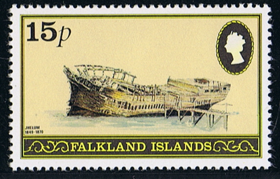 The 76p stamp shows us a painting of the wreck of the JHELUM of which the Falkland Post gives the following.