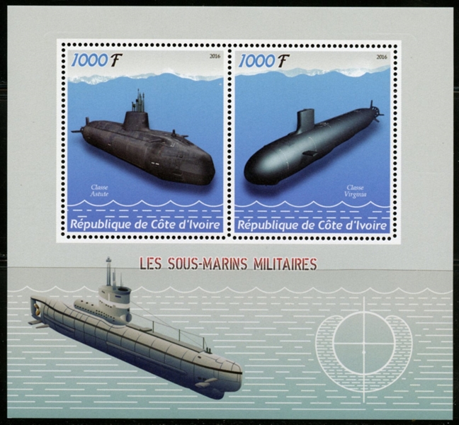 The submarine purporting to be an ASTUTE class sub is in fact a SWIFTSURE or TRAFALGAR class vessel. HMS ASTUTE is the only vessel of the class in the water, at present, and bears no resemblance to the vessel on the stamp. She is still undertaking sea trials from Faslane on the River Clyde.