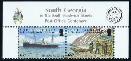 On 23rd December 1909, one thousand letters and 389 postcards were despatched in the first outgoing mail aboard SS CACHALOTE (wrongly given in this text as CACHELOTE) on the 65p stamp.