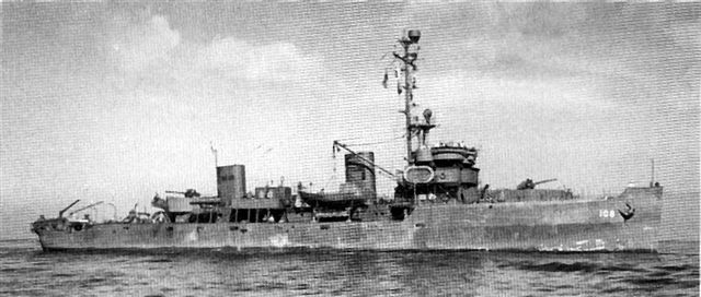 Armament, 1 – 3 inch, 2 – 40mm, 8 – 20mm guns. Two depth charge tracks, five depth charge projectiles.