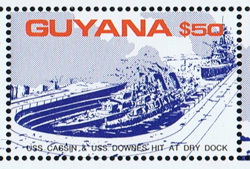 Guyana 1991 $50 sg3204, scott2452h., the ship on the right of the stamp in dry-dock is the PENNSYLVANIA. St Vincent Grenadines 1991 MS sg?, scott818, Position outlines. Sierra Leone 1991 MS sg?, scott1447 and 1447a