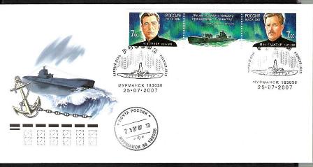 Russia 1962 6k sg2665, scott? 2007 7R sg?, scott? 2007 envelope (most probably the submarine is the K-21 in the margin, see index.)