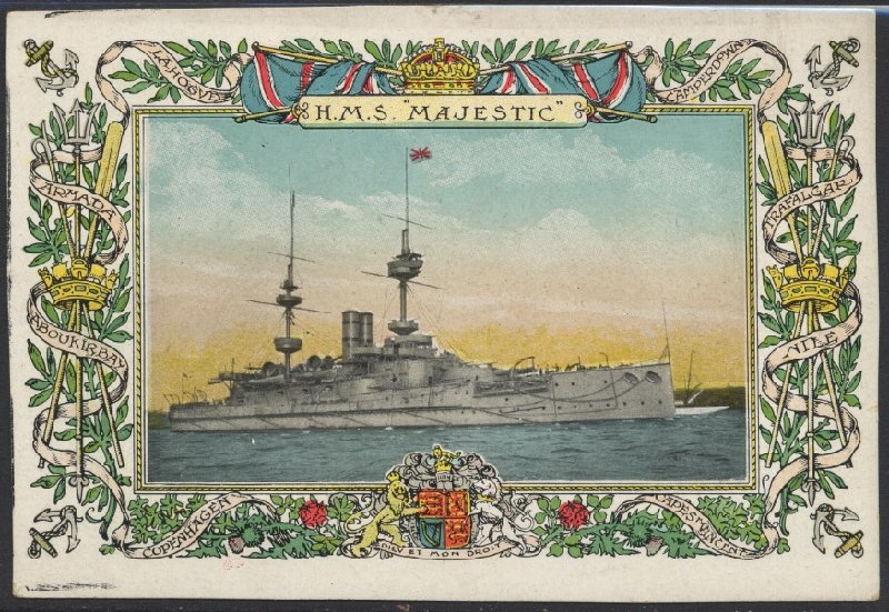 Majestic served in the Channel Fleet and Atlantic Fleet 1895–1907, then in the Home Fleet 1907–1914. Her early World War I service was in the Channel Fleet August–November 1914, as a guard ship on the British coast November–December 1914, and in the Dover Patrol December 1914–February 1915; during the latter service she bombarded German positions in Belgium. She served in the Dardanelles Campaign February–May 1915, seeing much service in action against Ottoman Turkish forts and shore batteries before being sunk on 27 May 1915 by the German submarine U-21 while stationed off Cape Helles with the loss of 40 of her crew.