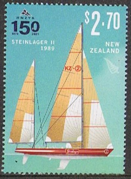 To remember Sir Peter Blake (1948-2001) the New Zealand Post issued in 2009 a set of stamps, the $1 stamp depicts Sir Peter on board a yacht with sail number KZ 2, which is the yacht STEINLAGER 2.