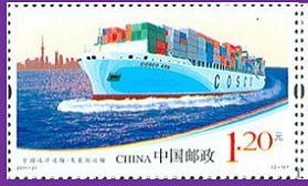 China Post issued two stamps of $1.20 in 2011 to commemorate China’s ocean shipping industry. The stamp depicting the COSCO ASIA with in the background of the stamp the port of Shanghai you can see.