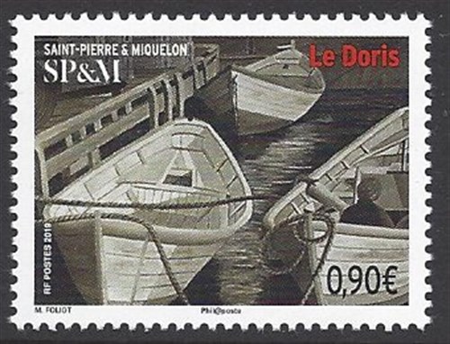 St Pierre et Miquelon 1955 10f sg 406, scott? 1967 25F. sg 442, scott C35. (the two cargo vessels on the left of the stamp are not identified.) 2012 0.60 Euro sg?, scott? http://www.shipstamps.co.uk/forum/viewt ... =2&t=16117. 1989 2f20 and 13f70 sg 616 and 617, scott 518 and 519 shows us in de foreground a "doris", on the 2f20 are in the background some sailing vessels. on the 13f70 stamp in the background is a surfboarder and a sailyacht.