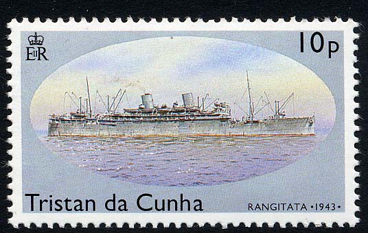Throughout the war the Rangitata was requisitioned by H.M. Government as a transport and she sailed all over the world. The Rangitata and her sister Rangitiki, after more than six years of war service will be withdrawn for refit during the latter half of this year. When they resume they will have been restored to their fine pre-war state. The vessels are to be completely re-engined to enable them to make the voyage to New Zealand via the Panama Canal in 30 days. Panama SG360 Tristan SG557 (S.B. 4/47)