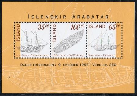 The SEXÆRINGUR a wooden boat propelled by 12 oars, on the stamp seen as open boat stepped with two masts.