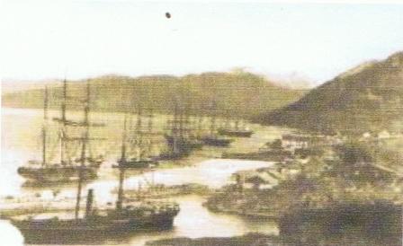 The photo after the stamp was designed shows Ivittuut with on the road many sailing steam- sailing vessels; the photo was taken in 1898. Not one of the ships is identified.