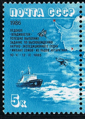 26 July 1985 freed the supply-vessel MIKHAIL SOMOV from the ice in the Antarctic.