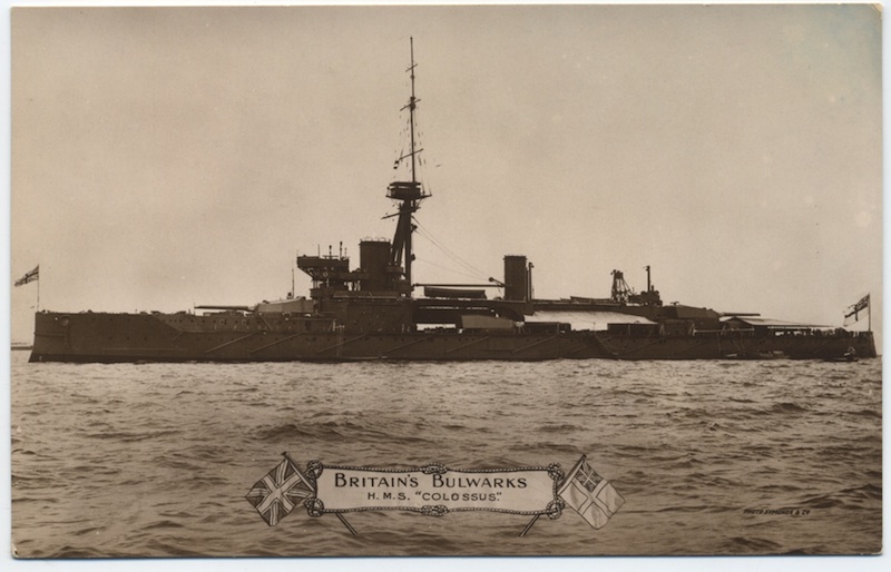 In November 1915 she was made flagship of 1BS, relieving HMS St Vincent (1908). On 31 May 1916 she was present at the only major battleship engagement of World War I, the Battle of Jutland. In this engagement she led a battle squadron comprising HMS Neptune (1909), HMS Collingwood (1908) and HMS St Vincent (1908). After the Grand Fleet had deployed, HMS COLOSSUS was seventeenth in line, and her look-out sighted the head of the German High Seas Fleet at 17.51.