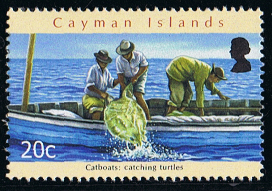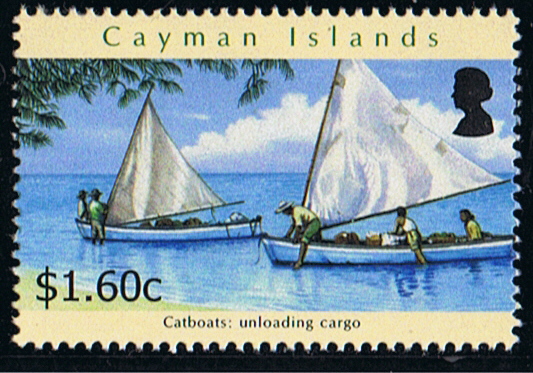 The Cayman Islands Cultural Series Part 3: Catboats is a six-part stamp series depicting various aspects of the catboat's development and role. The 20¢ stamp is titled, Catboats: Catching turtles. There are two 25¢ stamps, titled, Catboats: Being built and Catboats: Sailing around the Bluff. The 50¢ stamp is Catboats: Racing regatta style; the $1.60 stamp is titled, Catboats: Unloading cargo; and the $2 shows Catboats: Sewing the sails. The first day cover depicts a young man blowing a conch shell to let residents know that he and his father were on their way in with the day's catch.