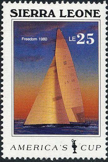 The 24th America Cup Race was sailed at Newport, Rhode Island, in 1980, the FREEDOM under skipper Denis Conner was the winner of the Cup. She sailed against the Australian yacht AUSTRALIA. The FREEDOM won three of the 5 races which were sailed from 16 till 25 September 1980.