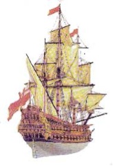 Three-deck ship with sails on three masts: the main-and fore-mast with three sails lines each, and mizzen-mast, with a Latin sail, on which was attached a square sail stretched between two yards (one upstairs, the other at the bottom).Yards of the spritsail course and spritsail topsail tied with them with no visible sails on the bowsprit. Main and foremast were composite, assembled from several sections and fastened together by means of clearly visible joints and tires. Note that the topsails well above the size of the lower sails, a typical feature of the sails of the time. The design of the underwater hull was fairly well established, but as soon as the water rose a huge transom stern with three stacked galleries, go to the short side galleries. All this was richly decorated with gilded figures and fanciful ornaments and married with three lights that indicate flagship. The artillery was divided into three decks: twenty-eight 32f guns on the lower deck, fourteen 24f guns on the top and eighteen guns plus twenty-six guns of smaller caliber on the main deck and quarterdeck. Reproduced by the model stored in the UK. Dimensions: length of 195.53 feet (59.6 m), the width of the deck 38.71 ft. (11.8 m), draft 17.71 ft (5.4 m), the displacement of 1296 tons, a team of 657 people.