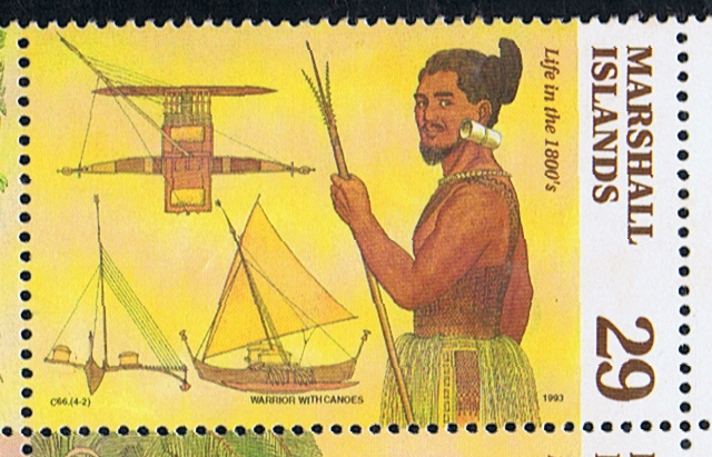 Marshall Island 1992 29c sg519, scott569 (most probably the other 2 stamps sg520 and 521which shows a canoe are also TSUKUPIN canoes.) 1984 20c sg33, scott59. 1990 25c sg351, scott?