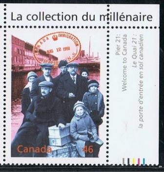 The “Millennium Collection” stamp of 46c issued by Canada depict some emigrants on Pier 21 at Halifax with in the background a passenger ship, which is identified as the BERLIN built in 1925.