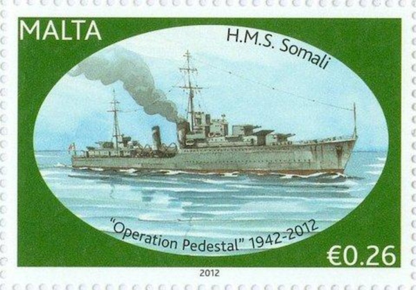 On 13 August 1942, SOMALI rescued all 105 crew of the American cargo ship ALMERIA LYKES, which had been torpedoed by E boats while taking part in Operation Pedestal. The rescued crew were landed at Gibraltar.