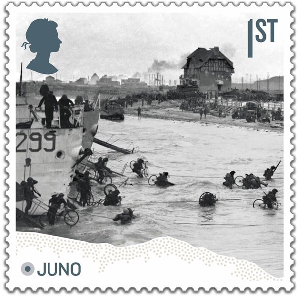 Canada Post Corporation's tribute to the Canadian war effort continues with four stamps to mark the 50th anniversary of D-Day, June 6, 1944 and the subsequent advance up the European coast. The Germans had ejected the British from Northwest France in 1940, and defeated the Canadians at Dieppe in 1942. Nevertheless, it was only a matter of time before a full-scale invasion was mounted. The questions were where when, and at what cost. At the Quebec Conference of August 1943, it was decided that the Normandy beaches of the Baie de la Seine would be the site for a June 5th landing with possible postponement to the 6th of 7th if necessary. It was anticipated that Canadian casualties for D-Day would be approximately two thousand. Five assault divisions were to be lanced from the sea, just after three airborne division were dropped under the cover of darkness. Canada's section was Juno Beach, between the British beaches, Sword and Gold. Over 15,000 Canadians troops, about a fifth of the total invasion force, were to secure the Canadian sector which was about four and a half miles of the 55 mile invasion front. Just after midnight on June 6, 450 troopers of the 1st Canadian Parachute Battalion crossed above the English Channel. Within hours, 84 were Nazi prisoners, 19 were dead and 10 injured. RAF Bomber Command launched the heaviest blow it had ever struck. The RCAF's No. 6 Group had 230 aircraft dropping 859 tons of explosives, with only one aircraft lost. The US Army Force dropped another 3,000 tons during the 30 minutes before the troops went in. The Royal Canadian Navy assisted with Bangor class minesweepers clearing a path through sea mines, corvettes escorting shipping, destroyers shelling the coast and infantry landing craft bringing in troops. About 110 Canadian ships and 10,000 sailors participated in "Operation Neptune". At 8:12 a.m. the first Canadian units hit the beaches meeting fierce opposition. But by 10:30 a.m. the following message was sent to General Crerar, Commander of the First Canadian Army: "Beachhead gained. Well on our way to our intermediate objectives." On that single day, Canadian casualties numbered 1,074 including 359 dead. D-Day was a triumph, but Canadians had paid for their success in blood.