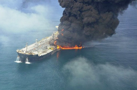 The INDEPENDENTA was the first of a serie of five Romanian supertankers which were constructed by Santierul Naval Constanţa in the 1980s. She was a 1977 Romanian-flagged crude oil carrier, the biggest ship of the Romanian commercial fleet at that time. She collided in 1979 with the Greek freighter EVRIALY at the southern entrance of Bosphorus, Turkey and exploded. She caught fire and grounded. From 17 to 27 November, there was slight leakage from the tanker. Another major explosion occurred onboard the vessel on the night of 6 December at 10:40 p.m., which resulted in more oil spillage.The slick from the vessel drifted towards the Port of Haydarpaşa, and the booms across its entrance could not prevent approximately 50 tons of oil entering the harbor. The tanker continued to burn until 14 December. Heavy oil contamination formed on the surface of the sea and on the heavily built-up shores and the recreational beaches of the Sea of Marmara and the Istanbul Strait.It was estimated that 30,000 tons of crude oil burned and that the remaining 64,000 tons spilled into the sea. Because of the rapid evaporation of the light components, the crude oil quickly sank to the bottom of the sea in an area approximately 5.5 km in diameter.