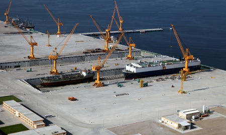 The vehicle carrier into the dry-dock is the PRINCESS VII, the smaller ship ahead of her and the one alongside the quay till so far not identified. The small ship can be one of the split hoppers of Jan de Nul, the large dredging company from Belgium.