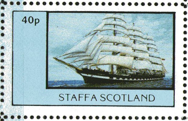 The Russian 4 masted barque Kruzenstern appears on the 40c.stamp. There are apparently a number of ways of translating the Russian name into English Lloyd's Register gives it as Kru:enshern. She was formerly the Padua, built by J C. Tecklenborg at Wesermunde and launched on June 24, 1926. As the Padua she is shown on a German, 1973, 8 pf. stamp though the stamp itself does not give the barque's name. Launched by J. C. Tecklenborg at Wesermunde, June 24, 1926, she has a gross tonnage of 3,545, net 1,162. Length 375 ft. 8in.; breadth 47 ft. 7 in.; draft 23 ft. 6 in.; depth 27 ft. 1 lin. Auxiliary power: two oil engines, 2-stroke, single acting, each 8-cylinder, geared to screw shaft, giving a speed of 10% knots. These diesels were built by the Russki Diesel Works. She is now listed as an auxiliary training ship. Bermuda SG365. Marshall Is
