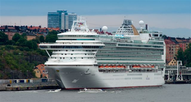 On the photo when enlarged you can see on the ships hull the logo of the P&O Cruises, the only P&O cruise vessel which visited Rotterdam in 2011 when the photo was taken and match with the stamp is the AZURA when she on 23 April 2011 visited Rotterdam. http://www.youtube.com/watch?v=WyV-qVplu6M