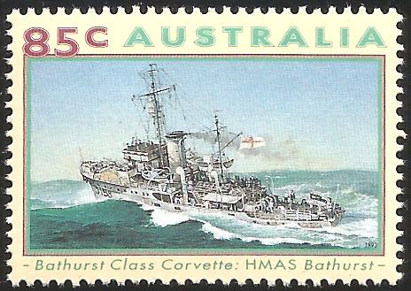 BATHURST HMAS. Minesweeper Pennant No J158 Built in 1940 by Cockatoo DY for the Royal Navy Launched 1s1 August 1940. L 162' (49.381m) PP, 186' (56.69m) oa x 31' 9.14m) x 8' 3" (2.51m) (mean) 650tons Triple expansion engine, 2 screws. 1.800ihp 15kn. Armament One 4". One 20mm guns and 6 MG Complement 60.