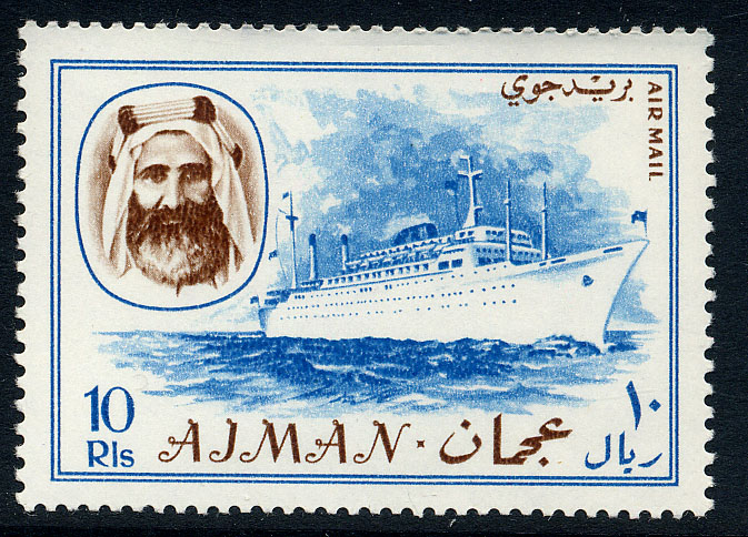 After grounding on 10 June 1990 she was towed to New York Shipyard, Erie Basin by Morgan tugs and spent most of the Summer there being repaired. Returned to service 1 September as ENCHANTED ISLE her stack was repainted blue with the name 'Commodore' in raised yellow letters, reflecting the merger of Bermuda Star Line with Commodore Cruise Line in Aug 1990. As ENCHANTED ISLE was refited by Vancouver Dry Dock Co. Ltd. in May 1992. Scheduled to be renamed COMMODORE HOTEL for Baltic Lines, positioned as floating hotel on the Neva River at St Petersburg, Russia in June 1993 - Ajman 1967. 5dh. SG139. 10r. SG148. (A Palmhof. WP Jan 1993. Nov 94. TB 1963)