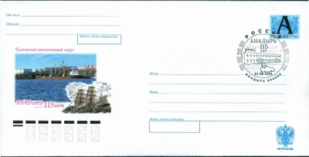 On the prepaid postcard is seen a ship of this type alongside in Anadyr in Russia, the shipsname is quit long but I can not make anything out of it, the same vessel is also on the prepaid envelope.