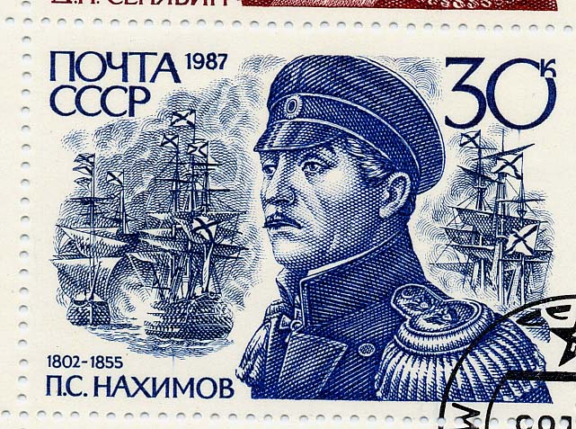 EMPRESS MARIA. 1st Rate. 84 guns. She was Flagship at the battle of Sinope, precursor to the Crimean War. The Russian Fleet under Admiral Pavel Naknimov was in command and destroyed the Turkish Fleet using the new hollow spherical shell- Russia 1987, 30k. SG5828 (LB17/182. J. Duhaut)