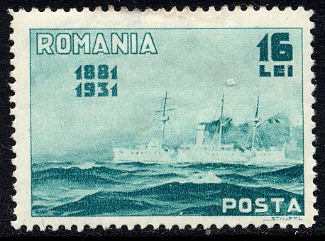 Rumania 16le sg1207, scott398. (Wrongly given by Stanley Gibbons Collect Ships on stamps as ARDEAL, there was a ARDEAL a monitor built in 1904 as TEMES and renamed in 1920 ARDEAL.