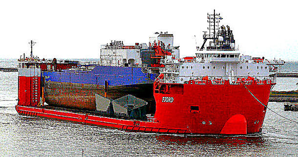 She was sailing to the Atlantic Marine Shipyard in Mobile, Alabama USA for refitting in an offshore motel for the oil industry, but after her superstructure was removed work halted, then transported on board the heavy lift vessel FJORD from Pascagoula, Miss. to Rotterdam, and from there to River Tyne