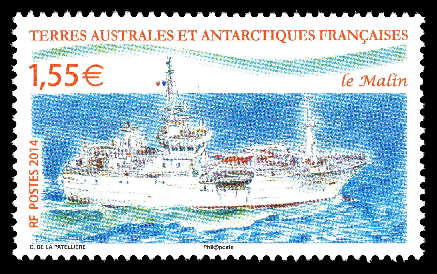 On 1 January 2014, French Antarctic will issue a stamp depicting a French patrol boat named “Le Malin”.