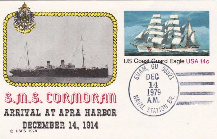14 December she arrived at Apra, Guam for bunkers, only 50 ton coal were remaining in her bunkers, but there were not sufficient bunkers available and the CORMORAN was refused bunkers.