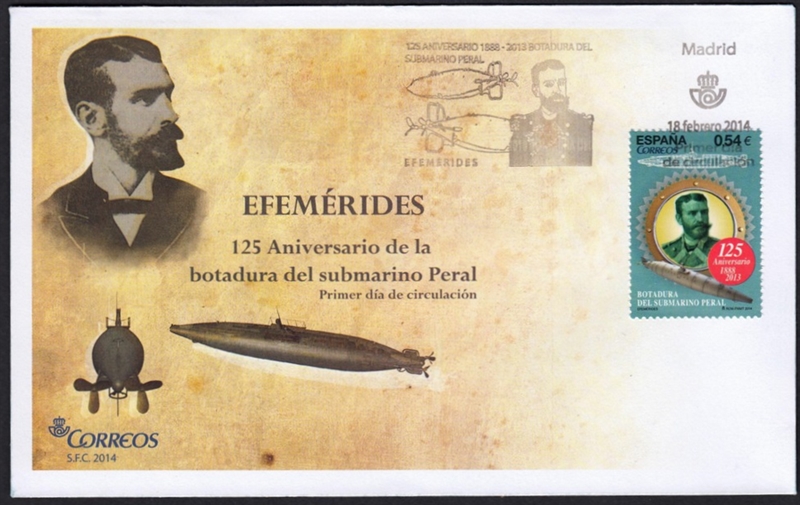 On the 125th Anniversary of the launching of the Peral submarine, a stamp will be put into circulation which reproduces the portrait of Isaac Peral, inventor of the submarine that appears beside him.