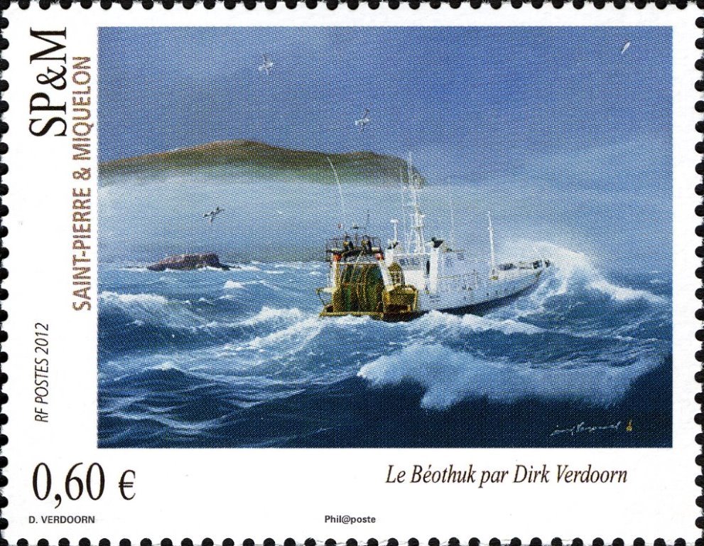 St Pierre et Miquelon issued in 2012 two stamps which shows maritime paintings of which the 0.60 Euro shows us the stern trawler BEOTHUK.