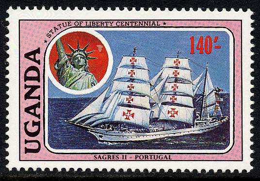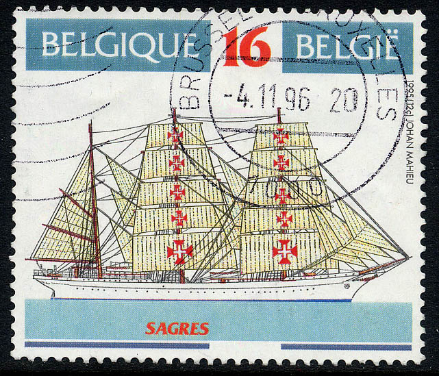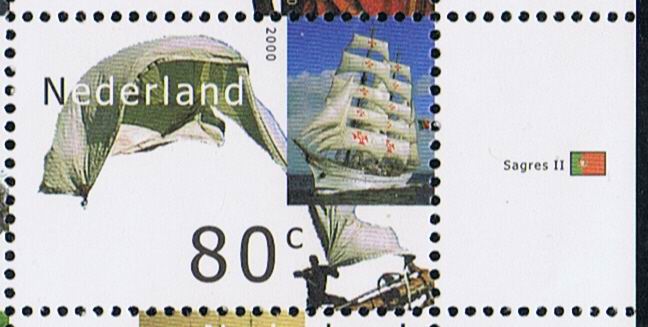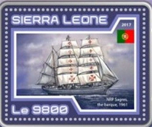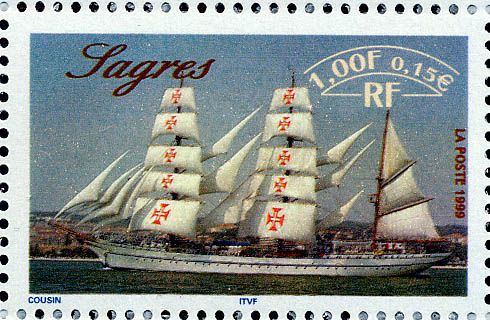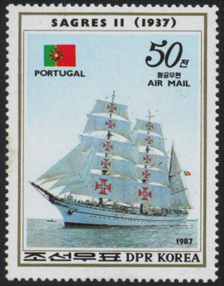 Clearly the vessel depicts is the Portuguese barque SAGRES II built-in 1937, she bears a red cross on all her square sails, and other details are the same as on the sheet.