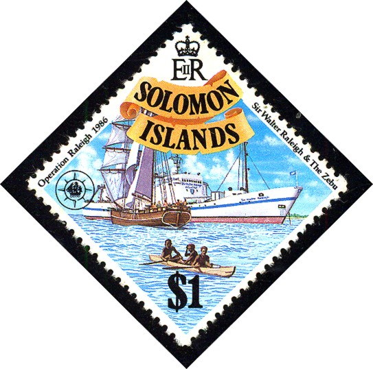 Gibraltar, Jersey and the Solomon Islands issued stamps to commemorate “Operation Raleigh” of the four-year trans global expedition program of the SIR WALTER RALEIGH and ZEBU.
