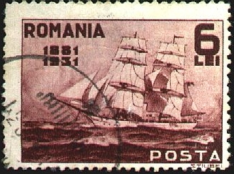 The training ship Mircea, second of the name, has also appeared previously on a Roumanian stamp issued in 1948. She was built by Blohm and Voss, Hamburg, in 1938. Displacement 1,604 tons, length 239 ft. 6 in., Sail area 18,830 sq. ft. Complement 83 plus 140 midshipmen. Auxiliary oil engine, speed nine knots.