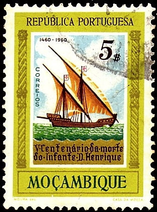 The voyages were made in very small ships “the caravel”, (ship that depicted on the stamp “Picanco”) a light and maneuverable vessel that used the lateen sail which had been the prevailing rig in Mediterranean navigation since late antiquity.