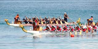 Dragon boat racing is a team sport that originates from China. The dragon boat is a long and narrow boat that combines the power, speed and endurance of 12 or 20 crew members in each team. During racing events, the dragon boats are always rigged with decorative Chinese dragon heads and tails and carry a large drum on board. At other times, the decorative regalia are usually removed, although the drum often remains aboard fro training purposes.