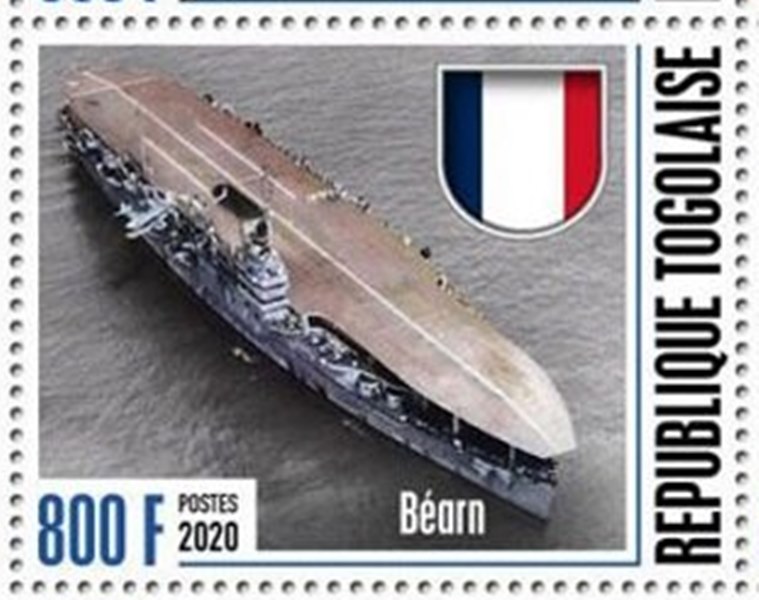 On the stamp are represented the plane Dewoitine as well as the aircraft carrier Le BÉARN.