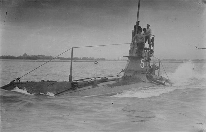 HMS E5 had a very short career before and after her commissioning. She had an engine room explosion on 8 June 1913, 20 days before commissioning. 3 were killed and 9 badly burned.