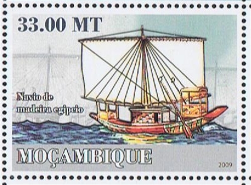 On the sheet issued by Mozambique issued in 2002 the middle stamp of the top row gives the inscription wooden boat from Egypt.