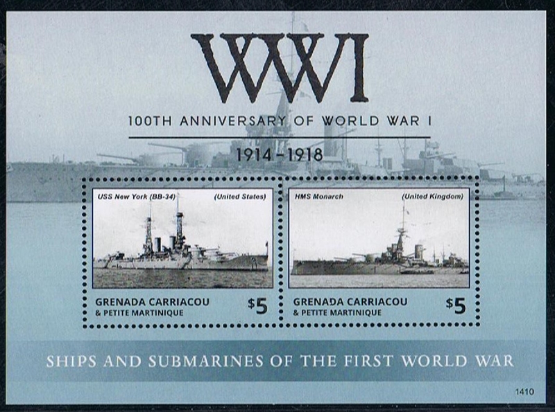 Grenada Carriacou a Petite Martinique 2014 $5 sg?, scott? (The other warship is the HMS MONARCH, which is also depict in the margin of the sheet. See http://www.shipstamps.co.uk/forum/viewt ... allery]/3/ )
